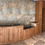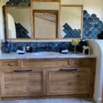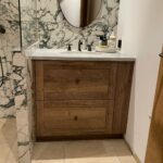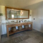 - 10 – Agencement d’un meuble sous vasques en Chêne vieux bois et miroirs, chantier Chamonix