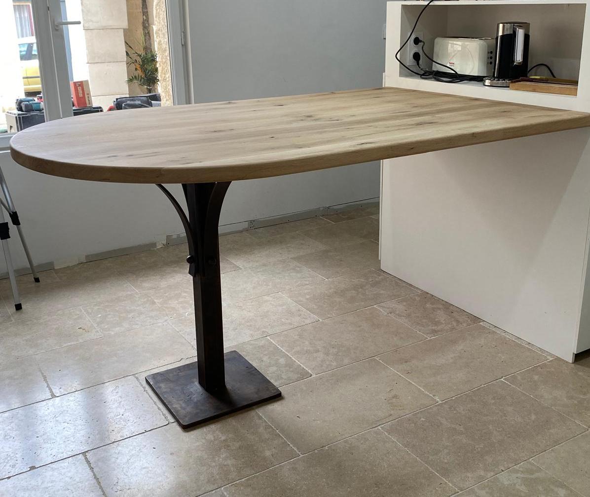 - 117 Plateau de table en chêne et pied en fer forgé