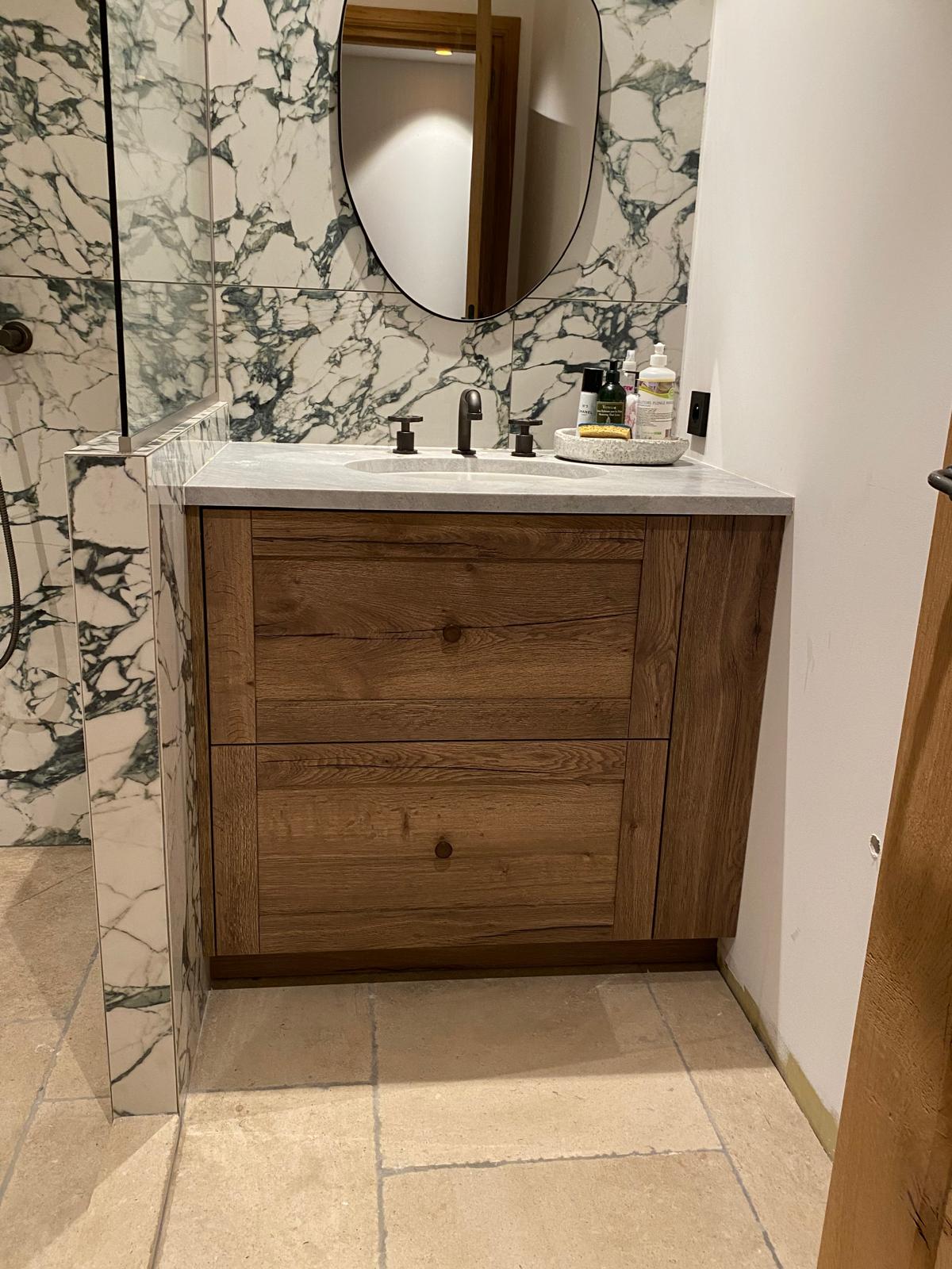 - 103 – Meuble de vasque en chêne, chantier St Tropez