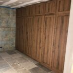 - 48 – Agencement d’une cave en Sapin vieux bois sur agencement placoplâtre, chantier Chamonix