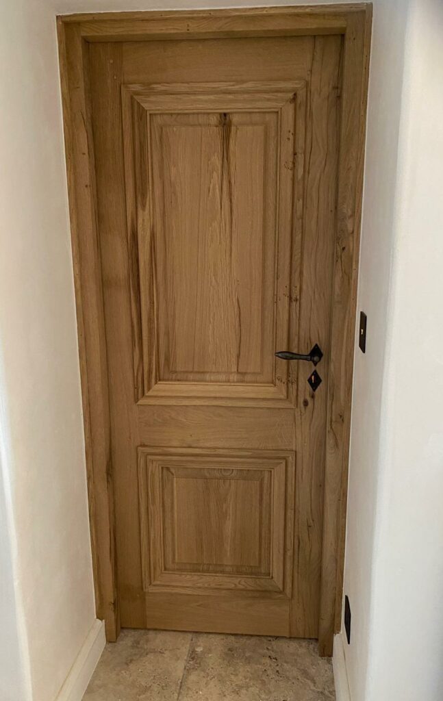 91 – Porte, à deux panneaux, avec grosse moulures, en chêne brossée