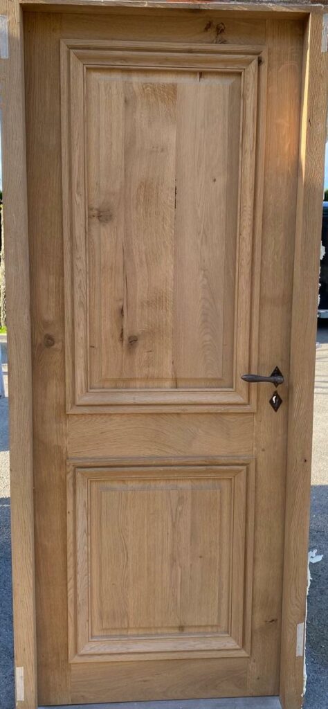 94 – Porte, à deux panneaux, avec grosse moulures, en chêne brossée