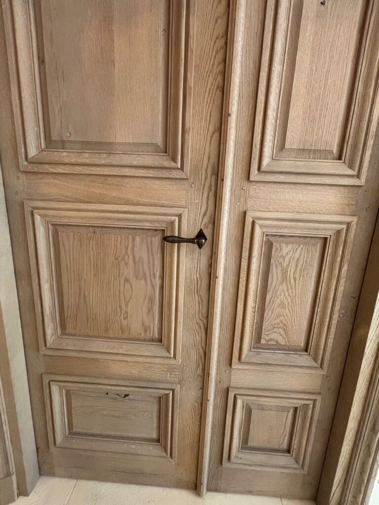 96 – Porte tiercée à multiples panneaux, en chêne brossée